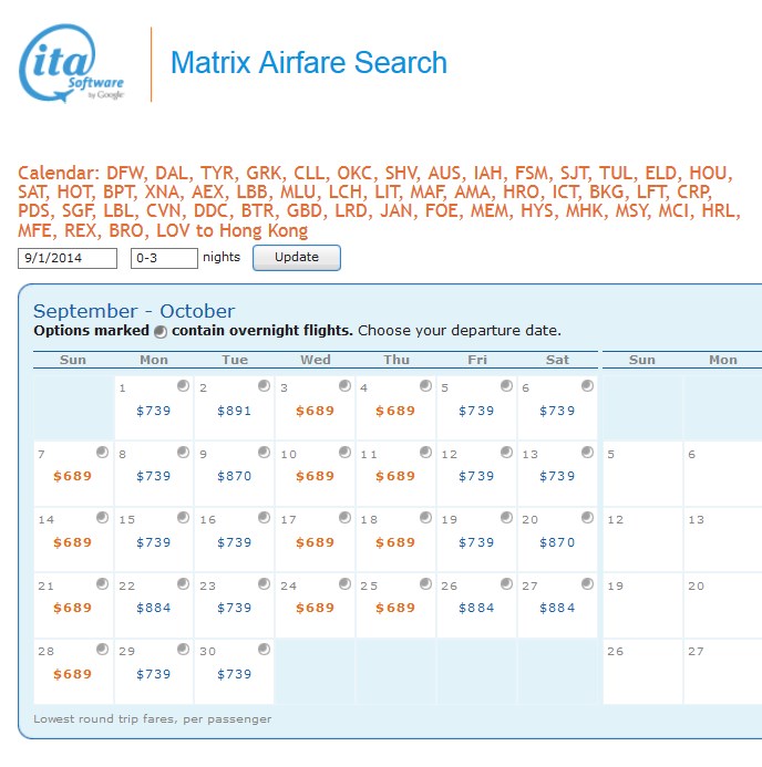 OY! These numbers are, well, HUGE & a HT to FT! Now do keep in mind this is not just a day trip. Most of us are talking a positioning flight to DFW before the run, then you get to pay for a few days hotel in HKG and then have to fly home. But at this kind of price it may be worth taking a week vacation and cranking in the points! Take a look at the results!
