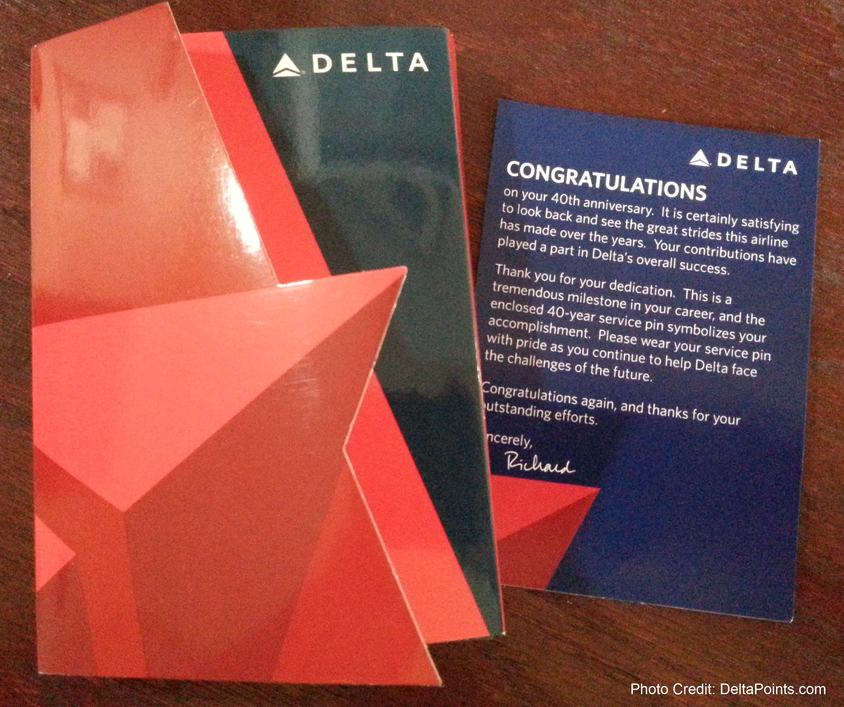 But a real, authentic, 14 Gold (gold filled I believe, that is, 14k gold over silver) with diamonds representing 40 years of service to Delta – that is kinda kool and btw these are very hard to get. It is not like you can just order these out of a catalog! 🙂