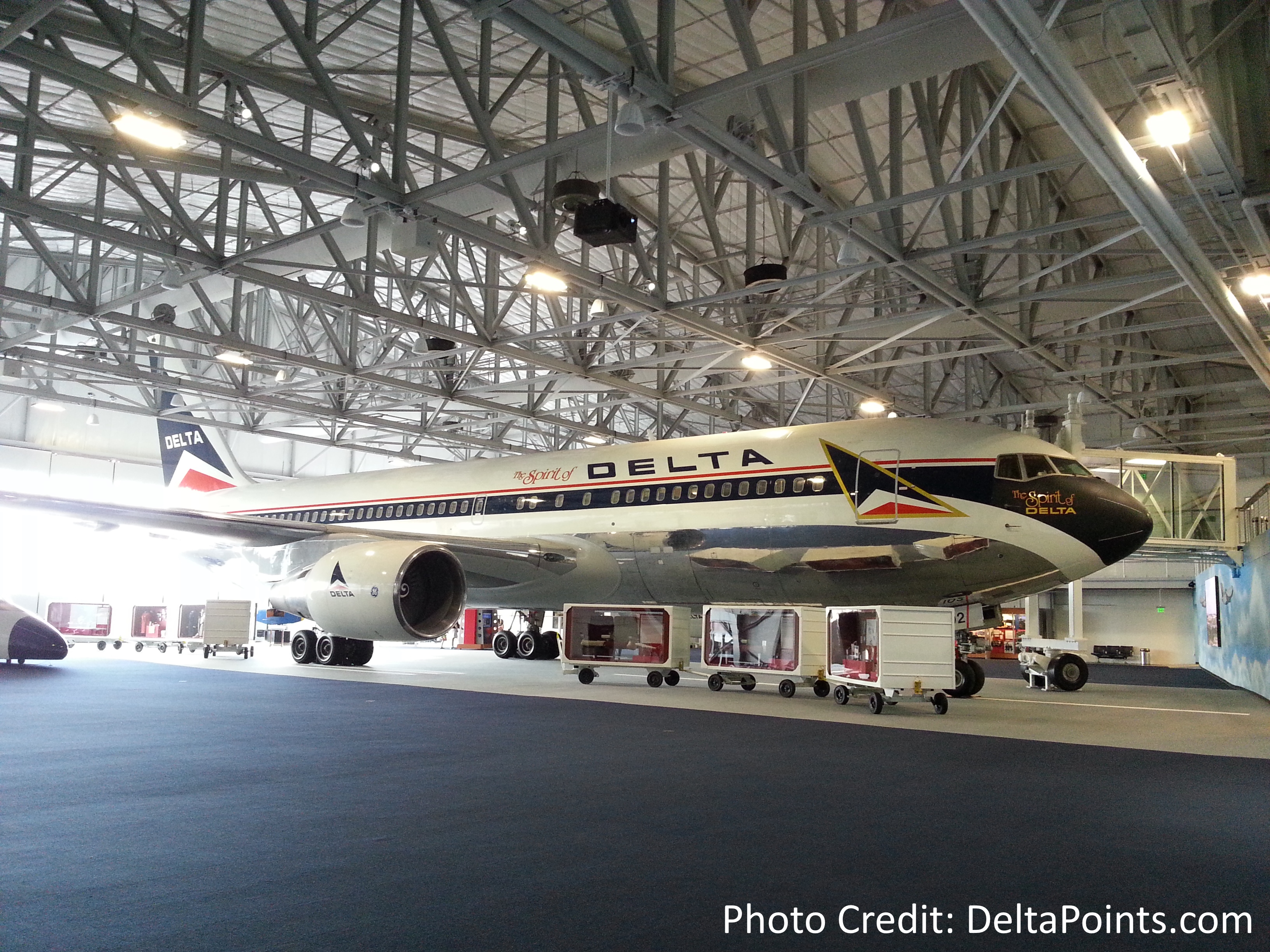 In this next hangar, so old the doors were not big enough to get this big bird in (they cut out an opening to get it in) you have a tour through the modern age of Delta. Let me show you what I mean.