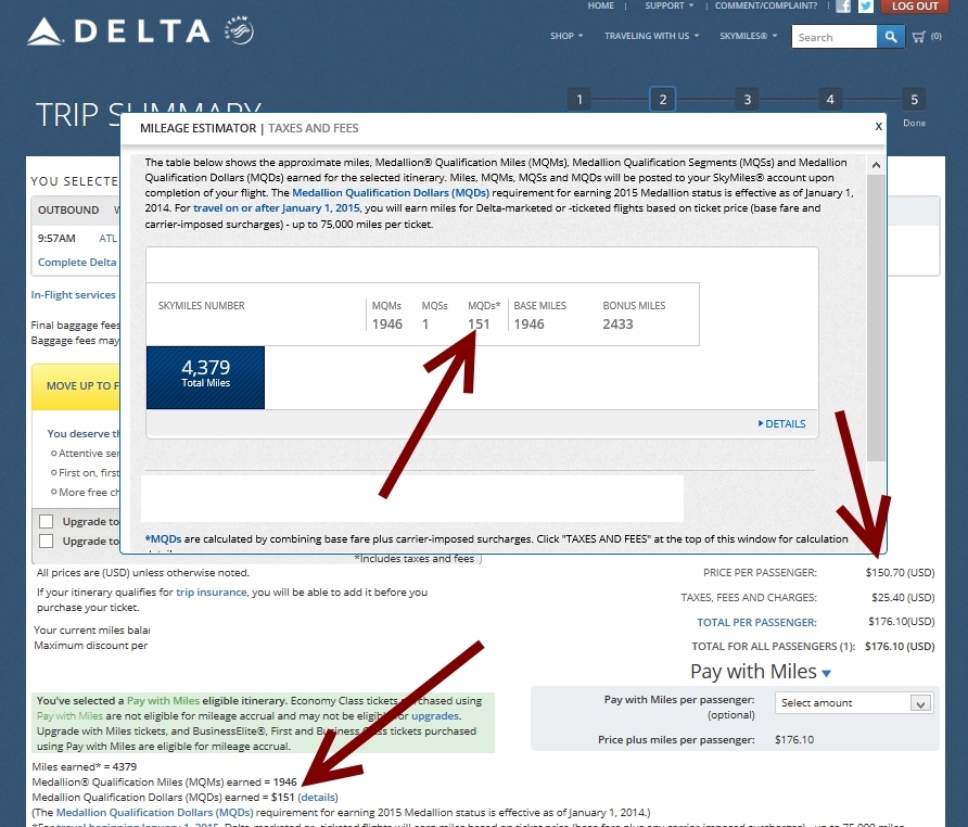 Other things to keep in mind. MQD is not the ticket price but the part of the ticket that goes to Delta as you can see above. Tax does not count. Extra bits do not count. Just the base ticket price as you see above.