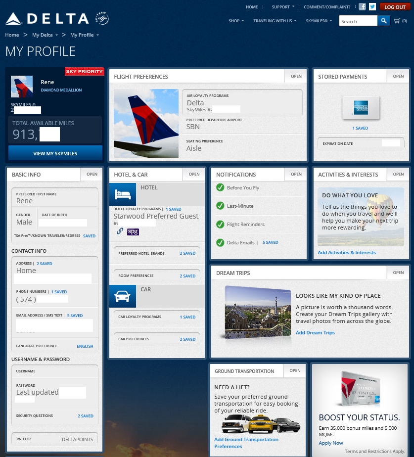 This one is going to be a catch all on topics I have touched on in posts in the past but not all in once place and this really needs to be one of the posts leading up to 100th in rookie topics. Now I know Delta Points readers are clearly a cut above the rest, but I still have to ask if you have taken the time to go into “My Delta” and set all your preferences in “My Profile“? I mean added things of UBER importance like your TSA PreCheck or Known Traveler number is a must, but what about all the other bits like your SPG number, your preference in car rental and seat choice i.e. window etc.? Then we have things like e-mail preferences. You may not like being “spammed” by Delta, but perhaps you should allow it to get a few gems from our mothership among the junk!