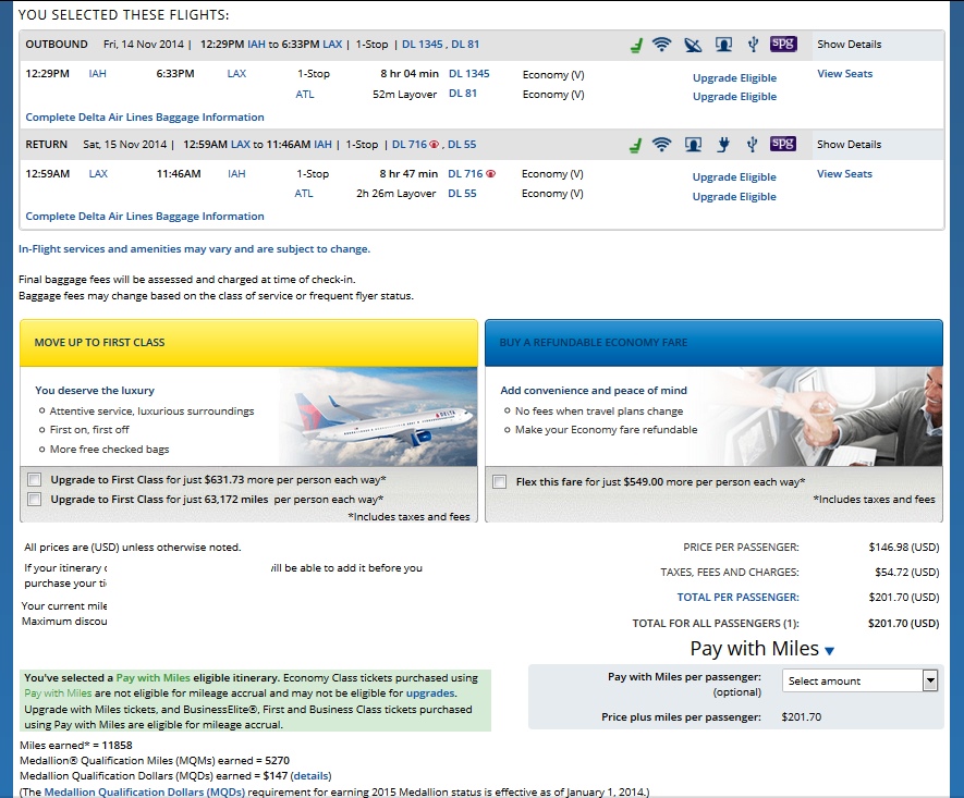 Oh I really like this one a bunch and a big HT for the tweet from Avion Addiction for the heads up. There are many ways. You can do this an overnight stay or a redeye. You can do this after work Friday and not miss work. You can do this one back to back days and crush it with a positioning flight to IAH and do back-to-back runs. Plus it is cheap! Keep in mind SUB 4CPM for MQMs puts this in my book as a SOLID Skymiles2015 run! Here are the numbers: