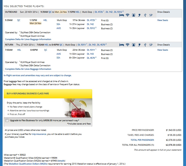 I have a limit and it is 10CPM for a business class run. This one tops out at 10.3 so I am cheating a little bit and going just a bit over but to spend a holiday week (even in the dark) in Delta business class and a few days in Helsinki is just too neat for this kind of price. Need 20k MQMs and some MQD spend? This could do it for you with a HT to FT brand new 1st class board for the find! Here are the numbers from LAX: