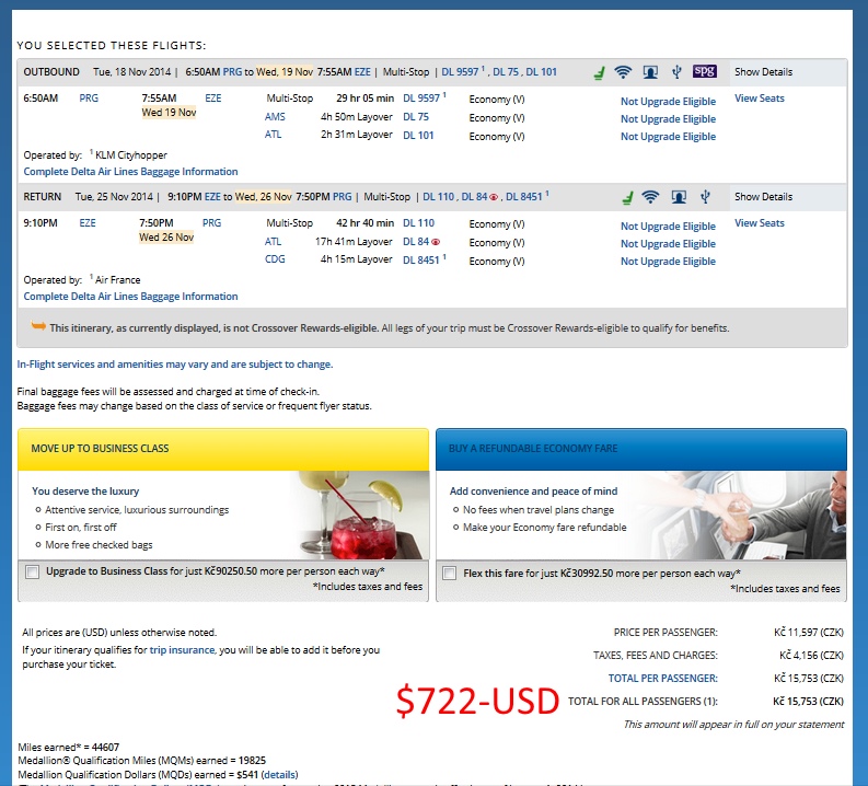 Here is one for my readers over the pond or for those who want a REALLY long positioning flight to PRG 🙂 ! It will take most of a week and you have an overnight on the way home. But, it is a great price and a TON of points with a HT to FT on finding this one. Here are the numbers: