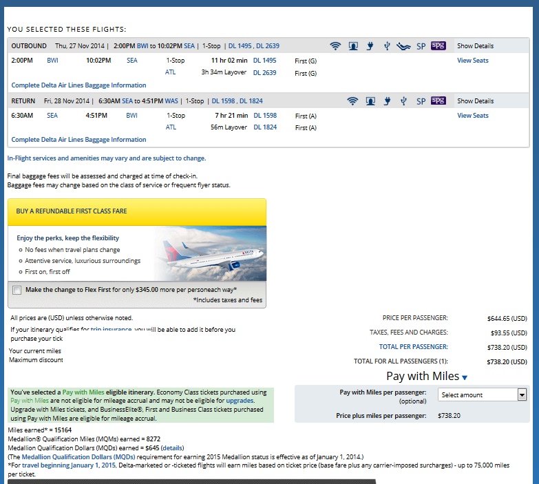 Not a bunch of dates to choose from on this one and at this sub 9CPM 1st class rate but if you can take a weekday day off (and redeye back) or want to spend the holiday up in the air (with an overnight) then this one could be fore you. Here are the details from the DEC date: