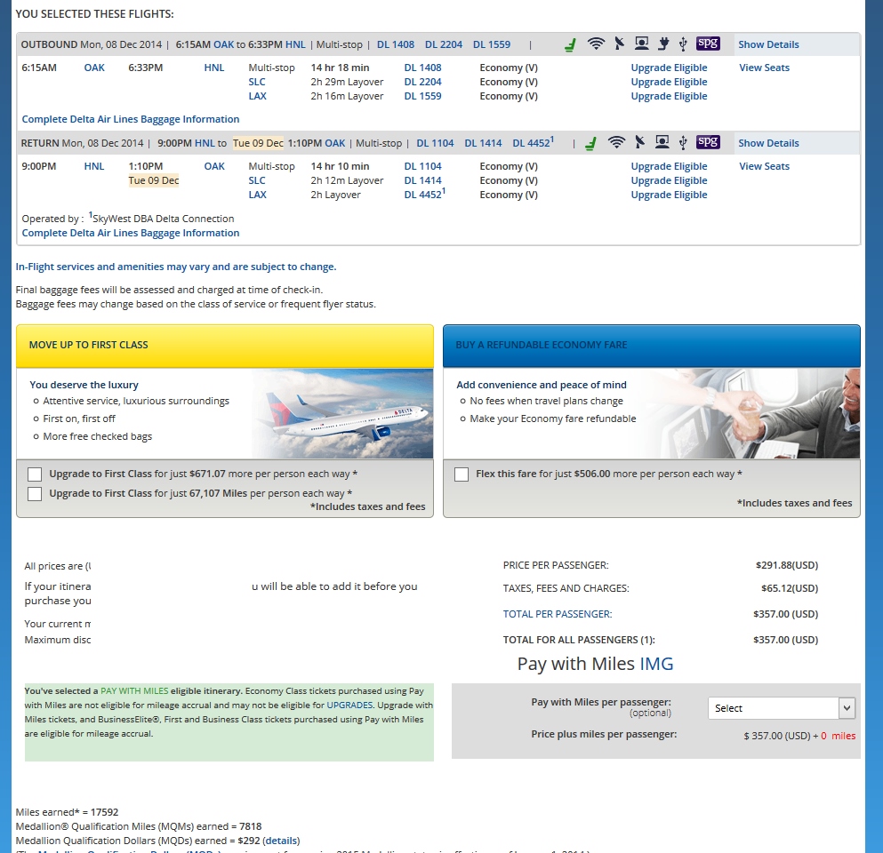 This is amazing. All legs can upgrade as medallion. You can do quick turns or stay. You can for a few bucks more do weekends. HT to reader Jason for the tip. BTW, as you can see from the shots, I had more success using the Delta.com flex day search than ITA Matrix this time. Pays to check both me thinks! Here are the really good numbers: