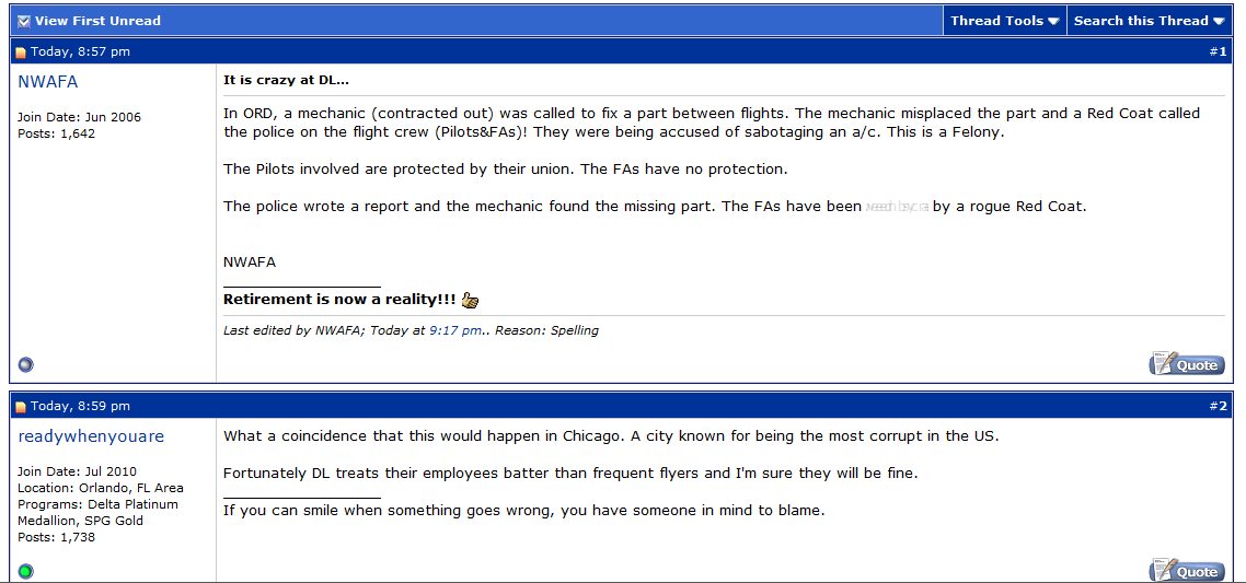 This next one from a thread at the Delta FlyerTalk thread just hit me as a REALLY moment! First, that it was put up in public and next what was said. Don’t know if any of it is really true but wow was it a funny read! Agree?