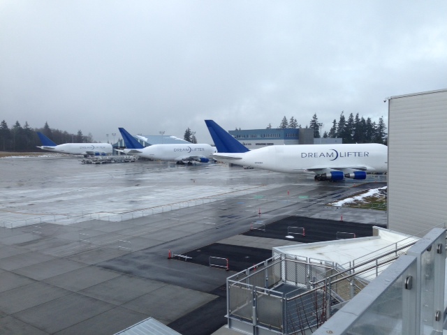 A reader sent me this shot of 3 Dreamlifters. I don’t know, I just think this is a funny looking aircraft. Maybe it is just me. Do you think it is ugly or fun?