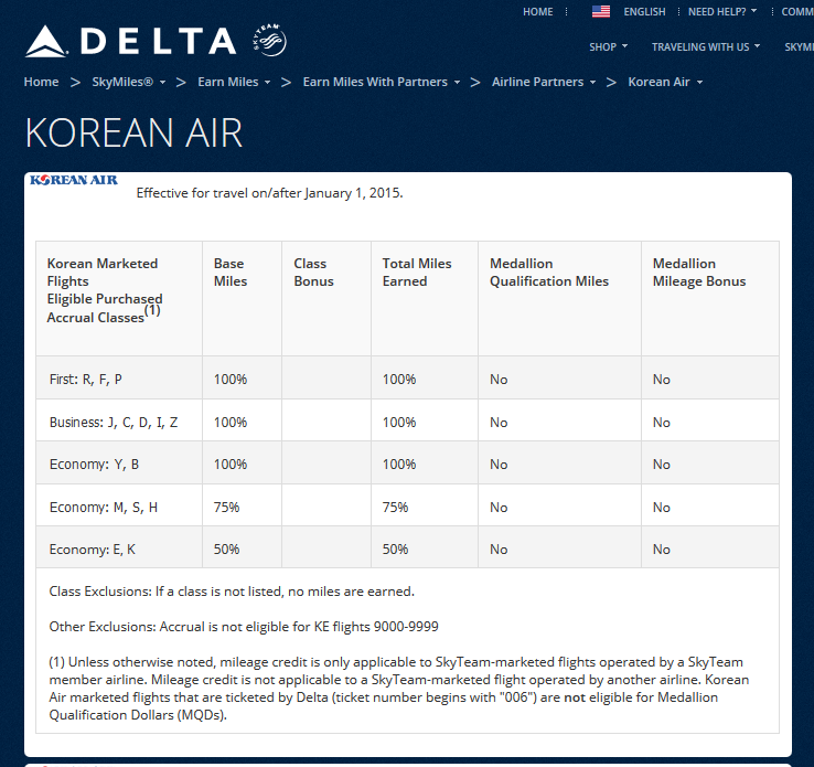With less that a month to go Delta has at LONG last released the charts for 2015 earning Skymiles on partners. Keep in mind that Delta ticketed flights i.e. those that are DL numbered and booked on Delta.com are going to be DOLLAR based for Skymiles earnings. You can check out the OLD charts HERE btw with the WayBackMachine.