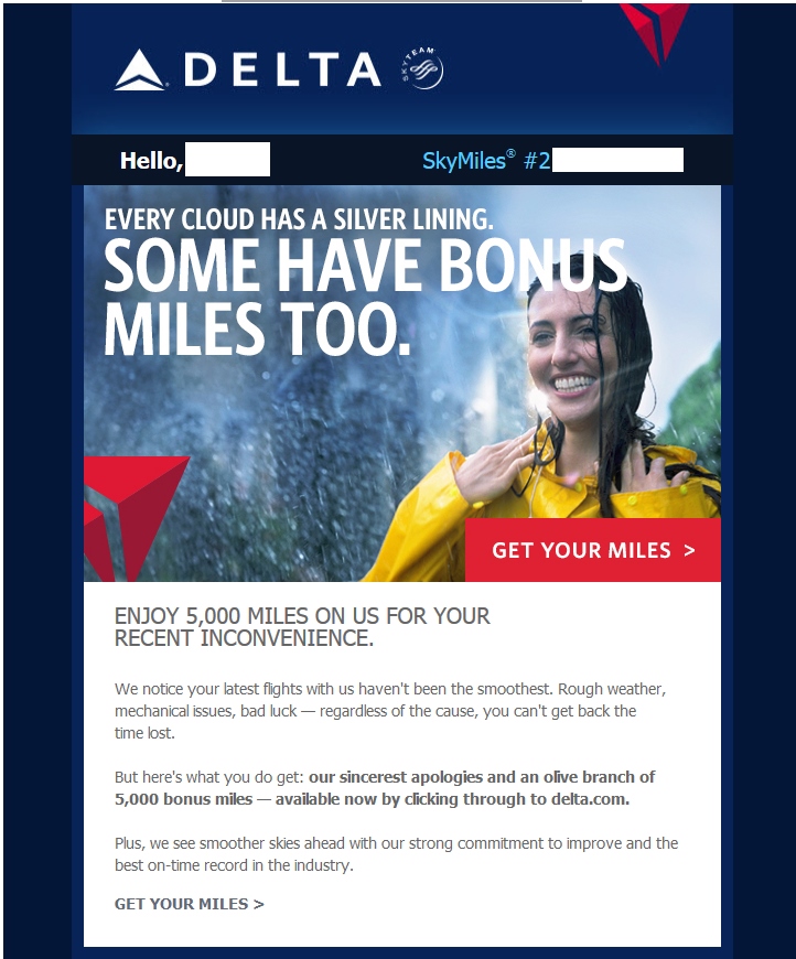 If you have not yet checked your in-box today, there is more than likely an email from Delta apologizing to you for your issue you just had (even if you did not fly recently) and an offer for some amount of miles. When you click on that link you go to: