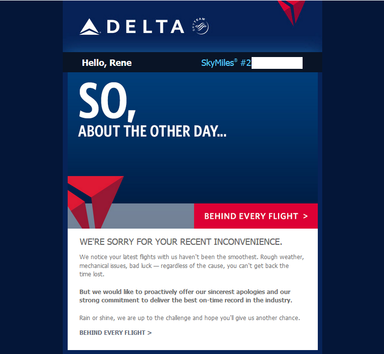 I have not been on a Delta jet all year and I got an email as well, just no points for the apology email.