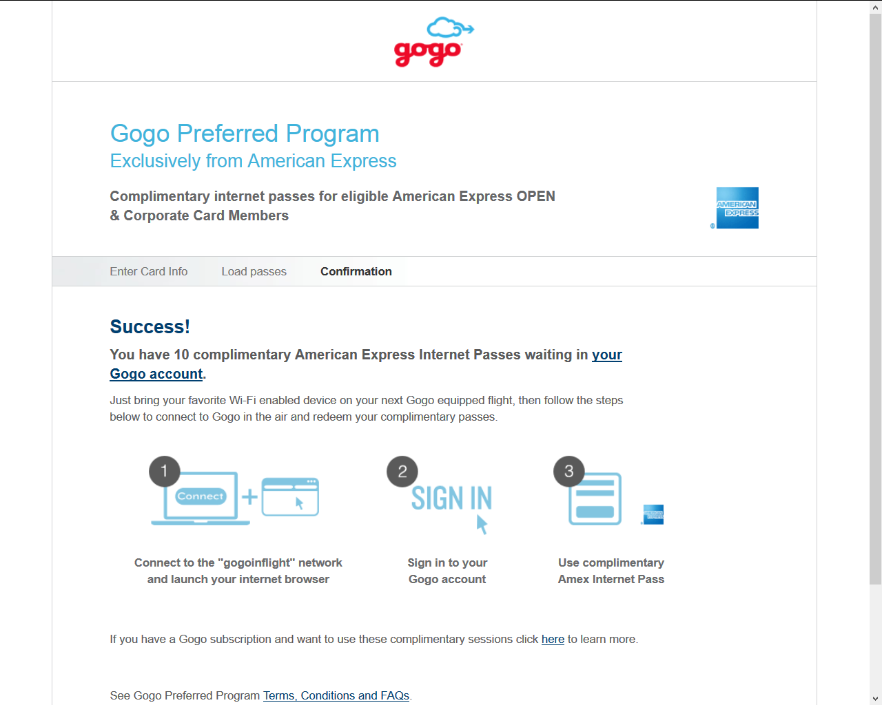 You can either have them load to your existing GoGo account, OR, you can make a new GoGo account for only these. Think about this before you load please.