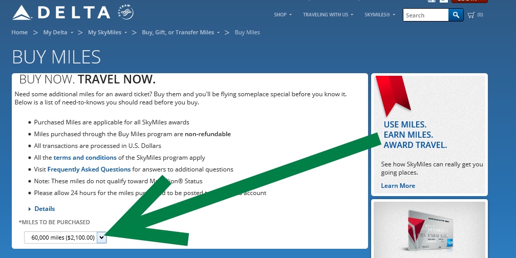 Well if SkyRubles are so worth so little, I am sure we can buy points that cheaply at Delta.com? Humm, Delta is offering to sell us 60,000 points for $2,100 or a value of 3.5 cents each (that is 0.035).