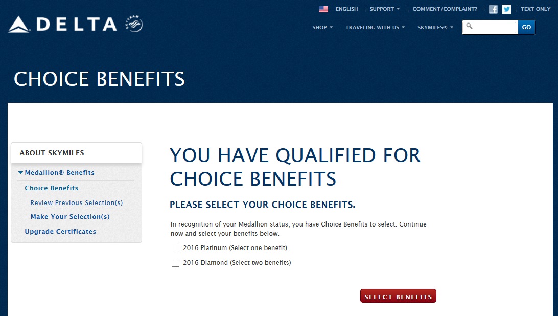 “Gifting Gold or Silver Medallion® Status to a recipient: Gifted Medallion® status can only be gifted to a recipient who currently has no Medallion® status or status below the gifted level. Gifted Medallion® status will be effective within 48 hours of selection and digital Medallion® credentials can be found in the Fly Delta app. For selections made for 2015 Choice Benefits, recipient status is valid through January 31, 2016; for selections made for 2016 Choice Benefits, recipient status is valid through January 31, 2017.”