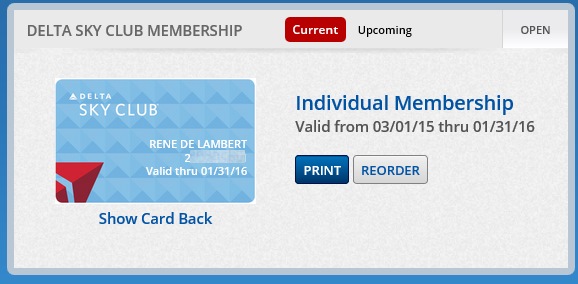 Now what other bugs are currently “live” on Delta.com? Here is an obvious one. If I go to pull up my Skyclub membership card in “My Delta” for this year it “correctly” shows I only have individual membership. I say correctly in quotes because Delta pulled a #KeepDescending worthy move of blocking my dear wife from joining me in the club as of 1MARCH2015. Thanks Delta!
