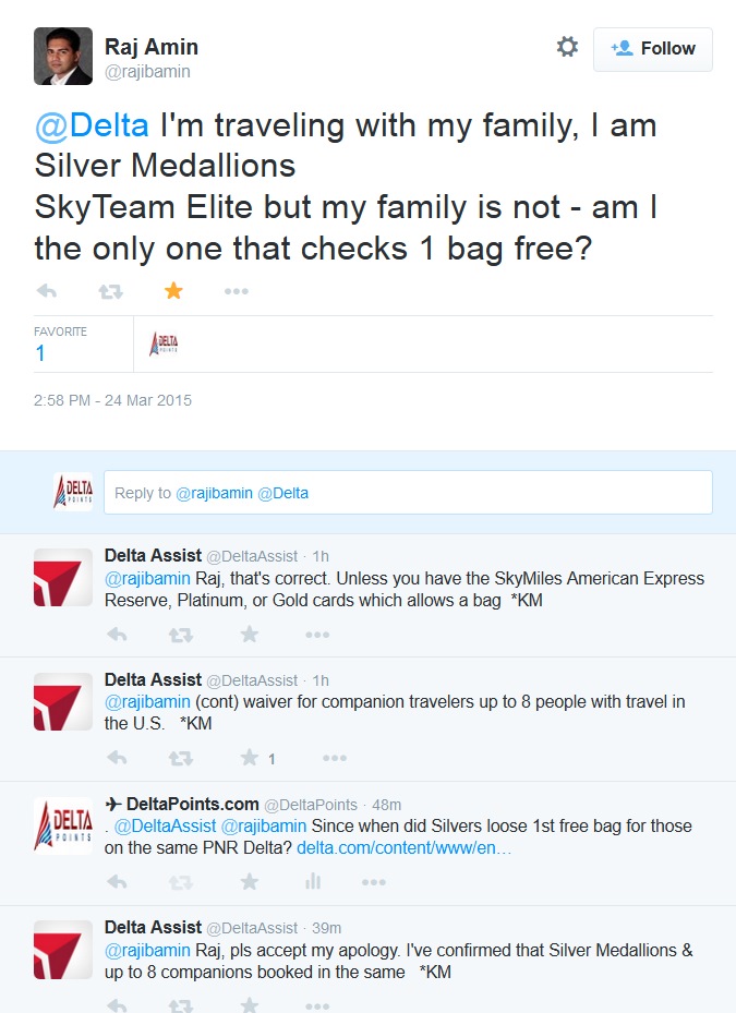 Take my example in the opening screen shot from twitter. The flyer reached out to Delta Assist, who normally is VERY good with info, but in this case gave out WRONG information. I jumped in and provided a link on Delta.com showing the correct information (and never even got as much as a thank you from the flyer or Delta Assist 🙁 ).