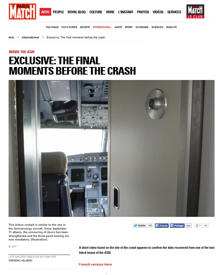 But this latest claim, if even true by paper ParisMatch is to me just too much. If there is video of the final moments from inside the cabin I do not want to see it. EVER!