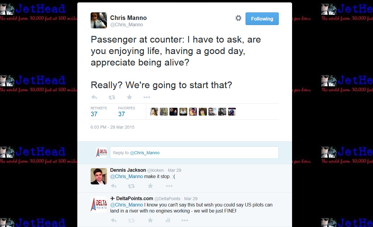 This tweet is from AA pilot Chris Manno who I follow on twitter. I also follow some Delta folks on twitter. I put my trust in them each time I fly, that is Delta people, and I will not even once give that a second thought. The level of respect I have for these people is without question. Period.