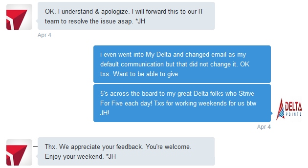 I an getting them via email as always. perhaps it is in your Delta profile settings? Or Delta really doesn’t want to hear what you say !!!! That was a joke.