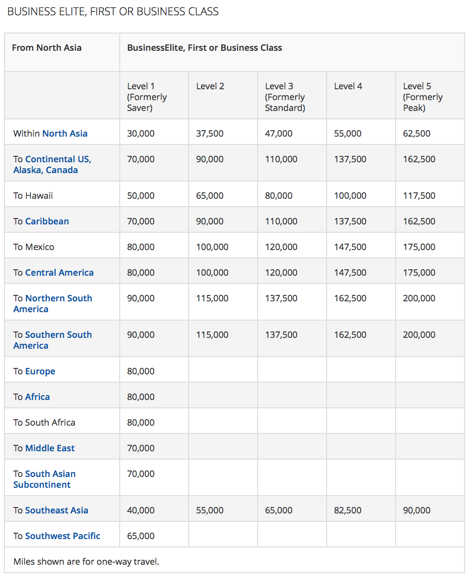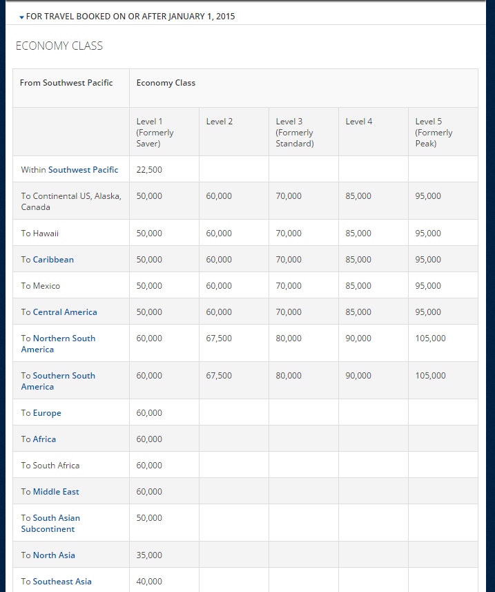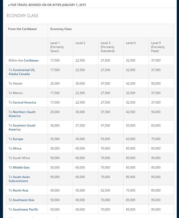 Many readers often e-mail me asking where they can find the award charts here on the blog (since I saved them before they were removed from Delta.com). I thought the most logical place would be the Essential Tab on the blog. Clearly I need a post with “just” the award charts so here is that post as a reference post. Also, before you look at the charts, take note of the breakdown on Delta.com what Level 1,2,3,4 & 5 stands for when you do searches online.