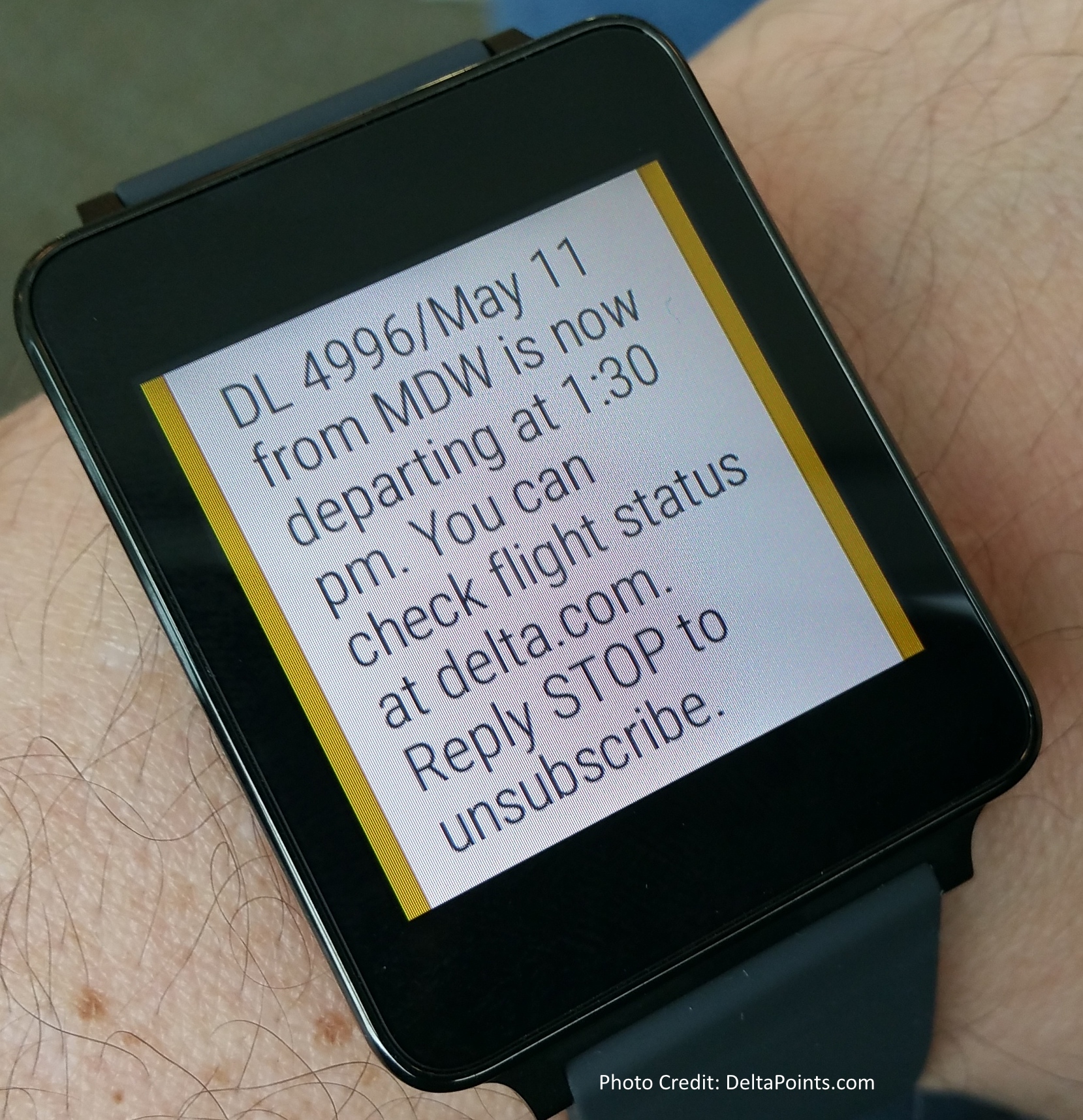 I also got timely updates to my watch concerning gate info etc. as well as flight delays and other updates. Unlike my phone that you have to open the Fly Delta App to see the complete message this was very handy and I really liked it a bunch. I just wish I could pull them back up once they have gone away.