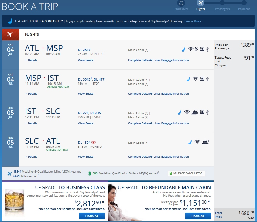 Other bits. You can, for a higher CPM just go ATL-JFK-IST RT and have more lounge time and end up around 11k MQMs. If you have some expiring Global Upgrade certs this could be a good way to burn them! HT to reader Richard who tipped me off to look at this HUB run.