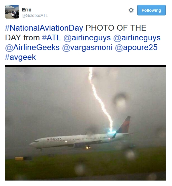 Do take a close look at the tires. Yikes! I was told this was in Atlanta earlier today. Ever been on a jet hit by lightning? – René