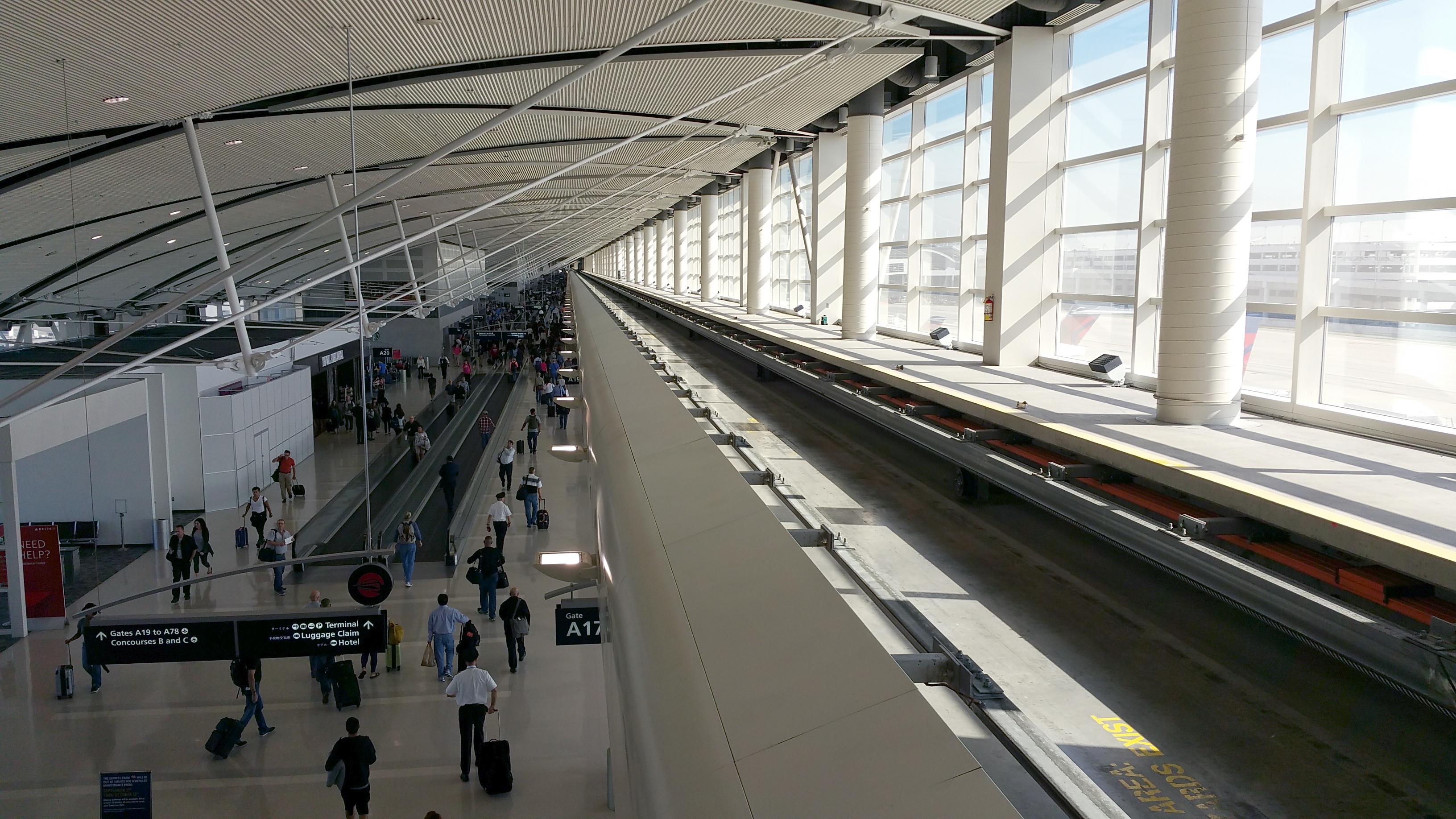 But now, until the 12th of October 2015, this “cable car” train that will zip you from one end of the massive A terminal to the other is closed.