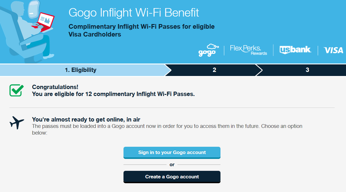 Validates your US BANK Signature Visa card and tells you if you are eligible for the 12 FREE GoGo passes. That link my friend is HERE (you are welcome Amol and Stepan).