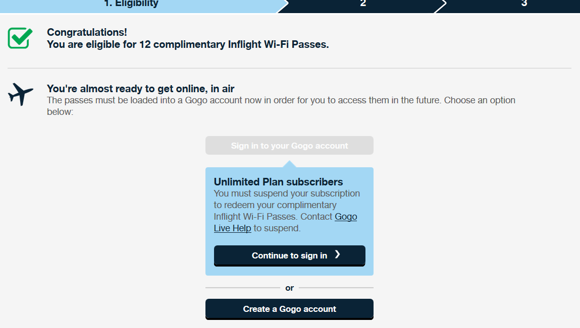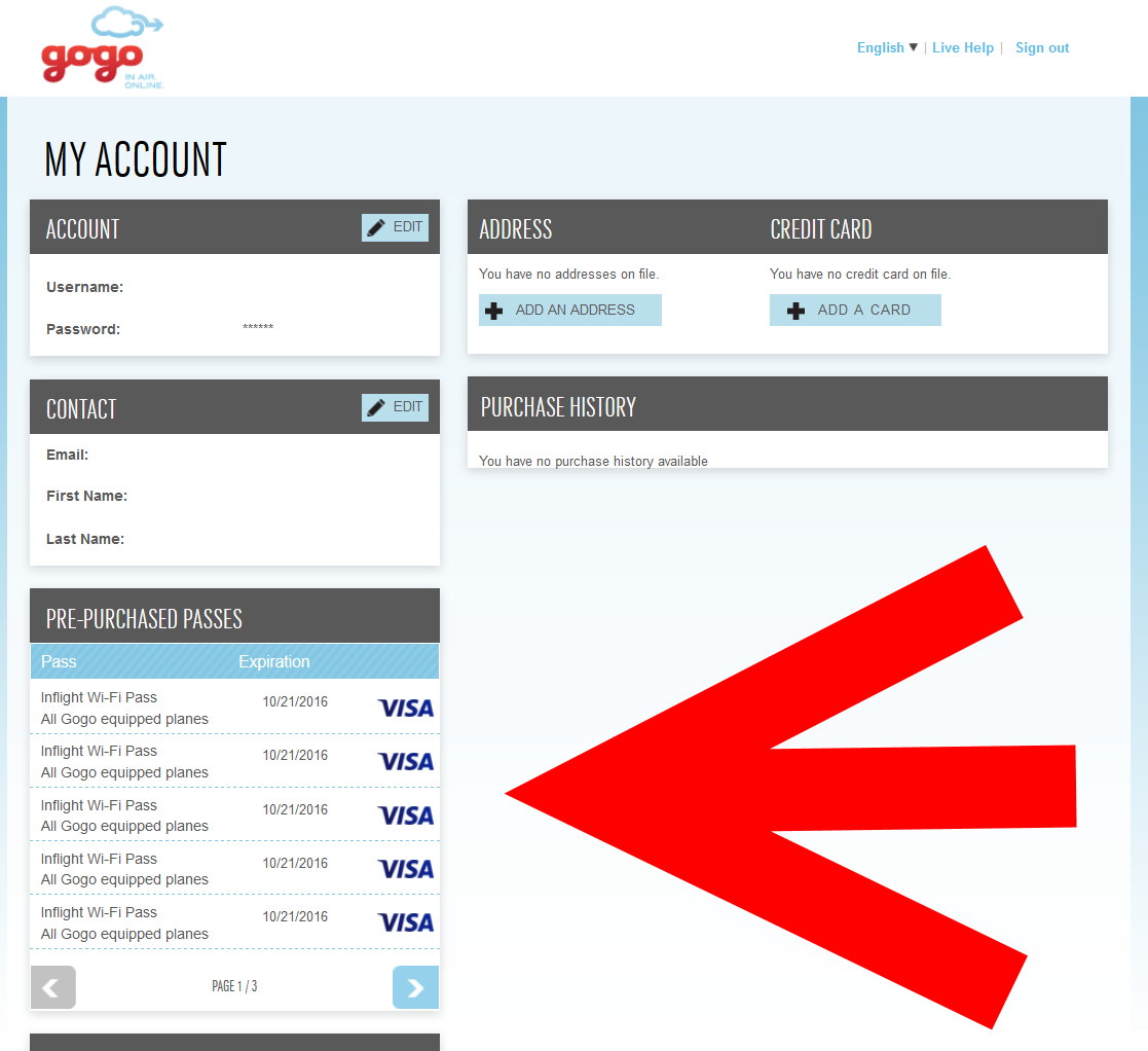 Then it told me I was good to go and the passes had been dumped into my account at GoGo.
