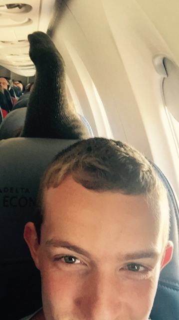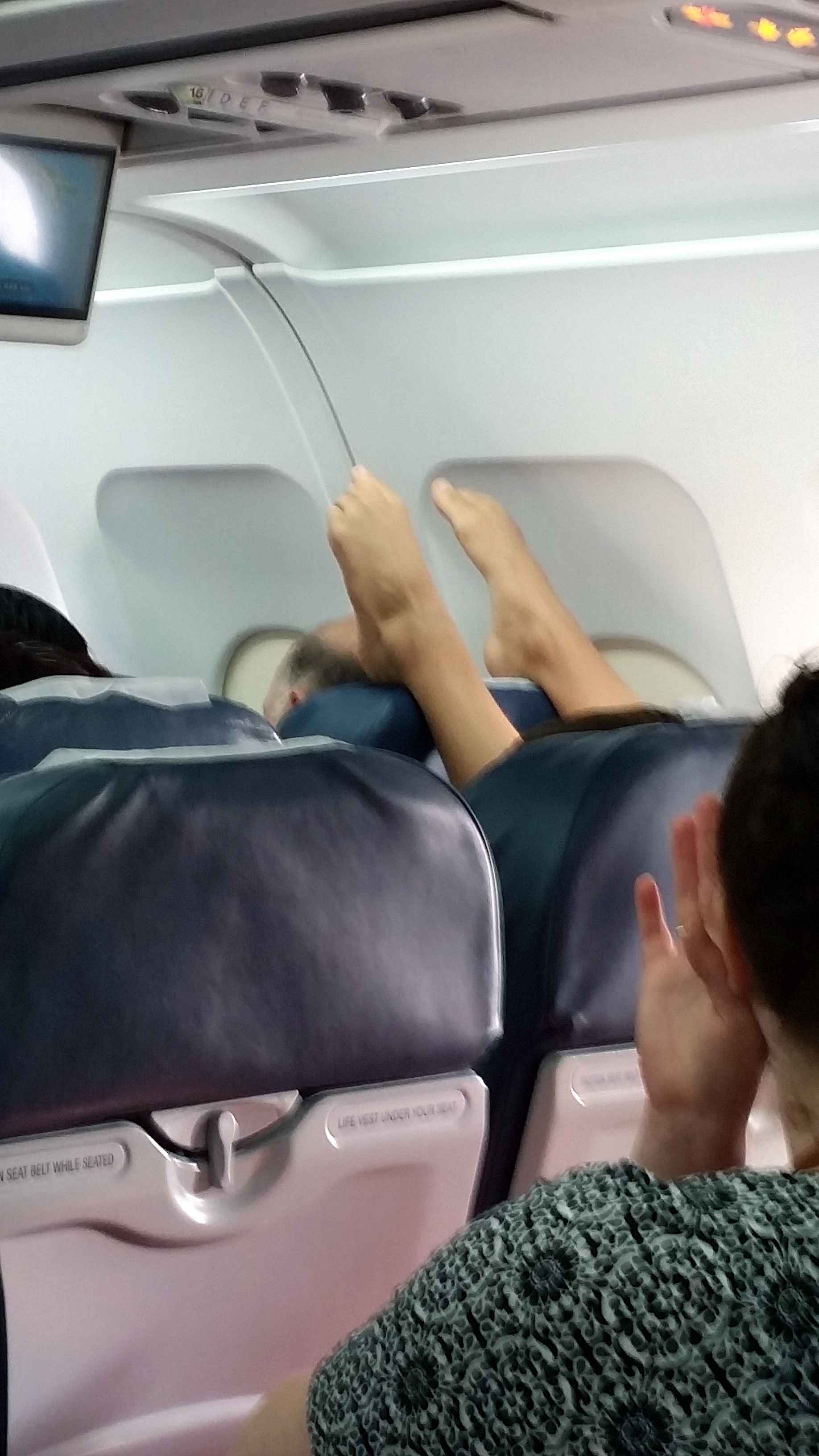 So when it comes to flying it makes me beyond nuts to see feet where they should not be. A reader recently took this one and said I can use it any way I want. First I wanted to yell at it (so I did and yes, I felt better). Then I showed my wife and she made an eeewwww sound! I so feel for the poor guy who just about had feet on his head.