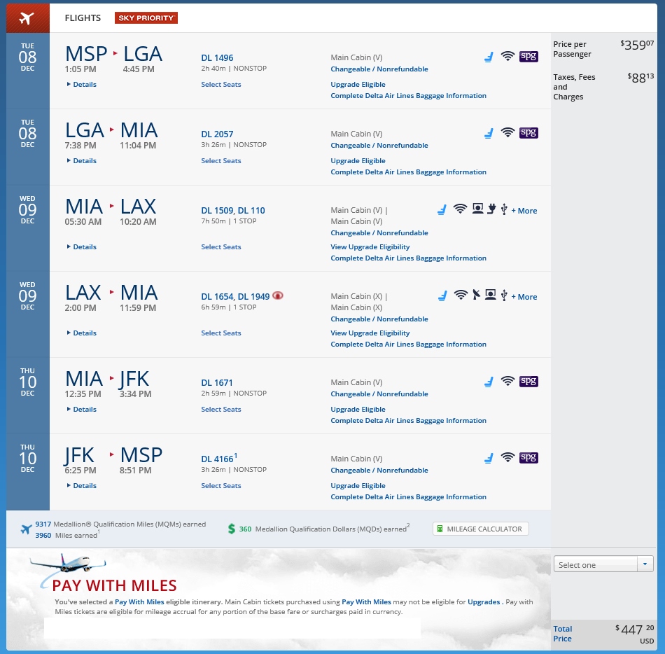 OK I admit this is just crazy and maybe that is why I am posting it. It will take you 3 days of flying and you will have to overnight in MIA for 2 days between flights. So, that does change the cost structure.But if you are flush with hotel points, and need MQMs, this could work for you maybe.