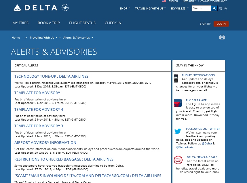 The next one, well, I don’t think there are 37 advisories pending on the Delta advisories home page. Nor do I think we should be seeing templates here but I am sure they will fix it soon.
