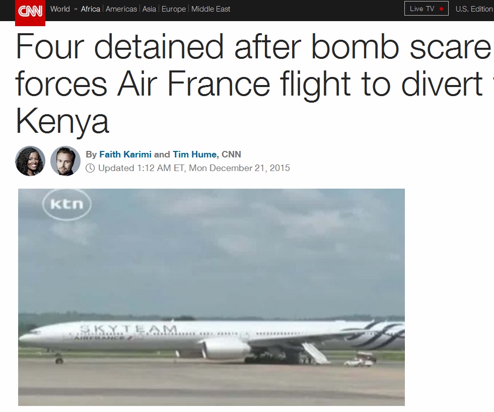 Oh it looks like the Skyteam AirFrance jet bomb threat was a fake according to CNN. It looked very real but was made out of cardboard.