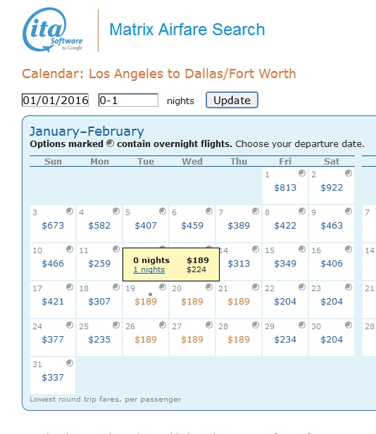 lax to dfw via dtw matrix 2016