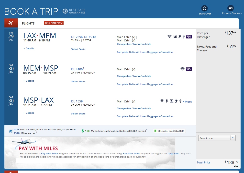Los Angeles to Minneapolis $189 & 4825 MQMs at 3.9CPM 2016 Weekend Delta Elite Mileage Run