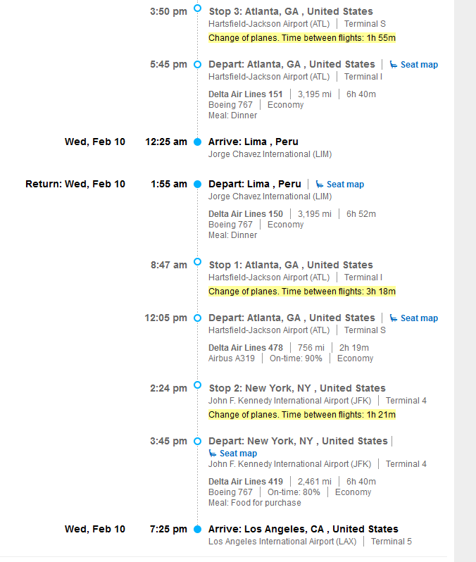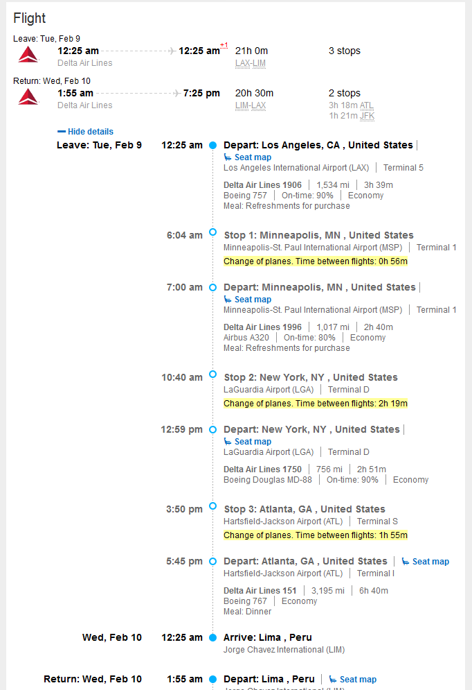 Rene: Looking at the LAX-LIM MR…..can one land at 1110 pm and make a 1245 AM departure…if one is crazy enough to not even stay in Peru? ( I am look at dates in April and May…so arrival and departure times differ from your example).