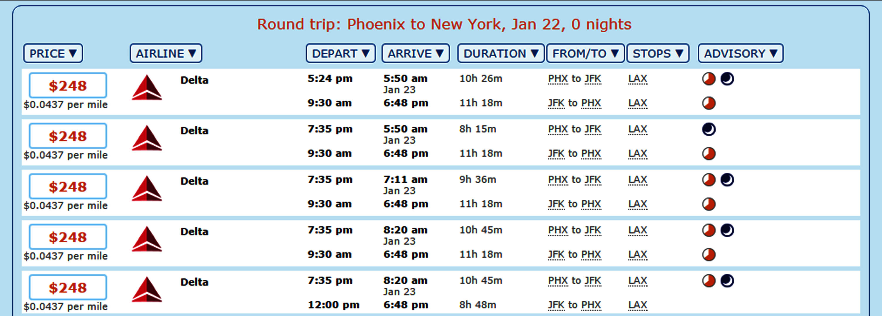 Sign in first to your Delta Account and then click this DIRECT BOOKING LINK Phoenix to New York City (JFK), via Los Angeles for January 23rd-24th