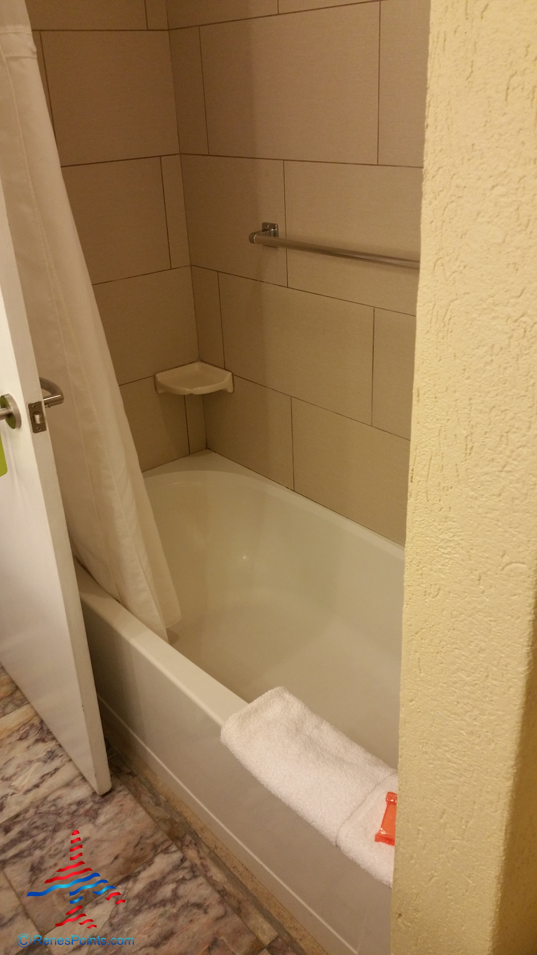 The bathroom was decent size and had two sinks. Nice touch when getting ready. The shower was reasonably clean but could use some work. The shower head was rather “needle” and if you, like us, happen to get a sunburn it is not the most pleasant. That, and the water temperature went each day from REALLY HOT to lukewarm. Minor issue but frustrating when you combine it with the shower head.