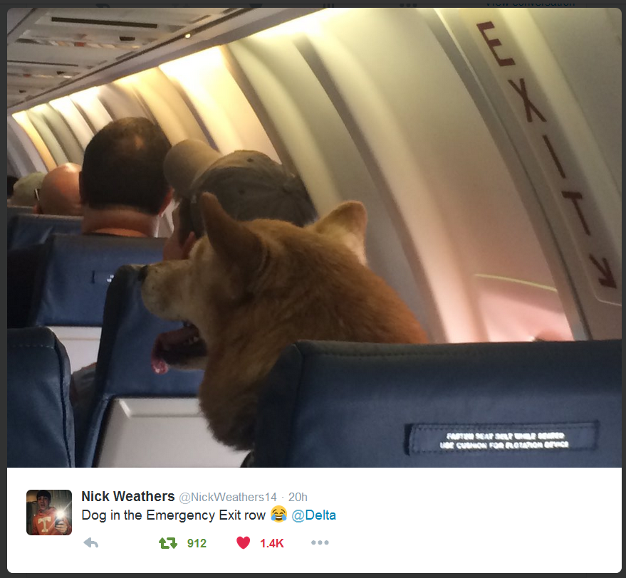 The other day on twitter Nick Weathers put up this photo “supposedly” showing a rather LARGE dog on a Delta flight. In the seat. In the exit row. Err, say what?