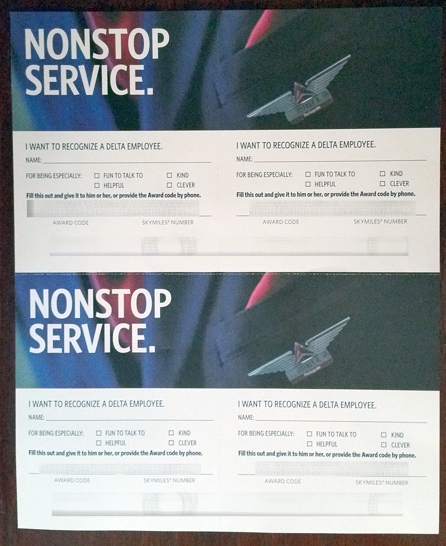 To me the MOST IMPORTANT part is the JWD or Job Well Done certs that I love giving out to Delta people who help me either live or on the phone or on Delta Assist. I wish I got 8 or 12 of them but once again this year we get just 4. I have asked over and over year after year for more, but those requests have fallen on deaf ears sad to say.
