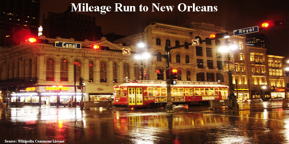 Here is another great domestic mileage run that René did just last week. Another almost same-day run, although it really is an overnight flight between New York City and New Orleans. Leave either at 7:00am or 11:00am and connect through Salt Lake City and then you are off to New Orleans. You can a short night in New Orleans or a long layover and get back to New York early the next evening, around 6:00pm.