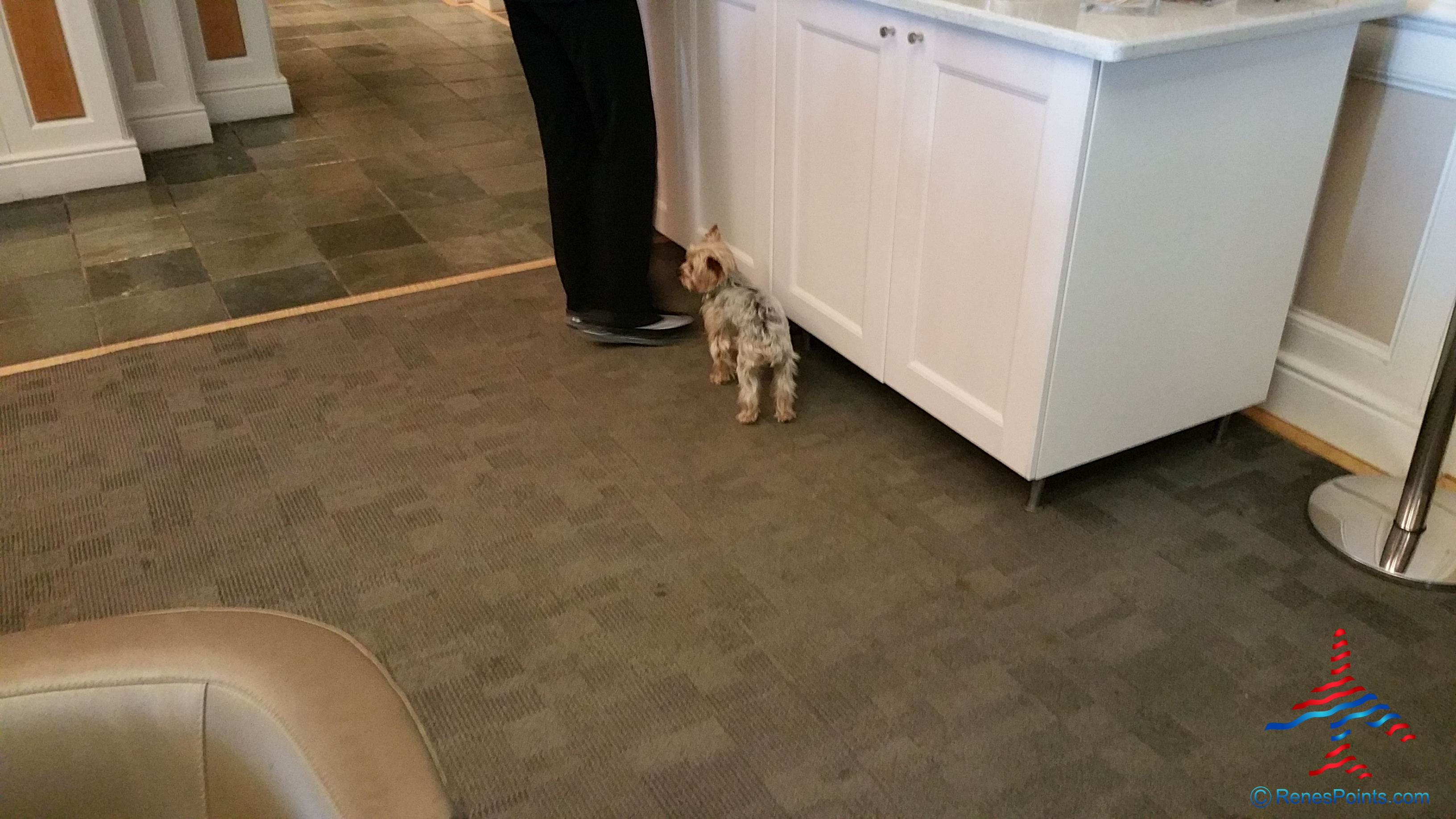 Beyond that I think all dogs should either be on a leash or in a carrier in the Sky Clubs (yeah, maybe some kids should also be on a leash or in a carrier as well). Just walking around or being held food counter level by mom is just – eeewwwwww!