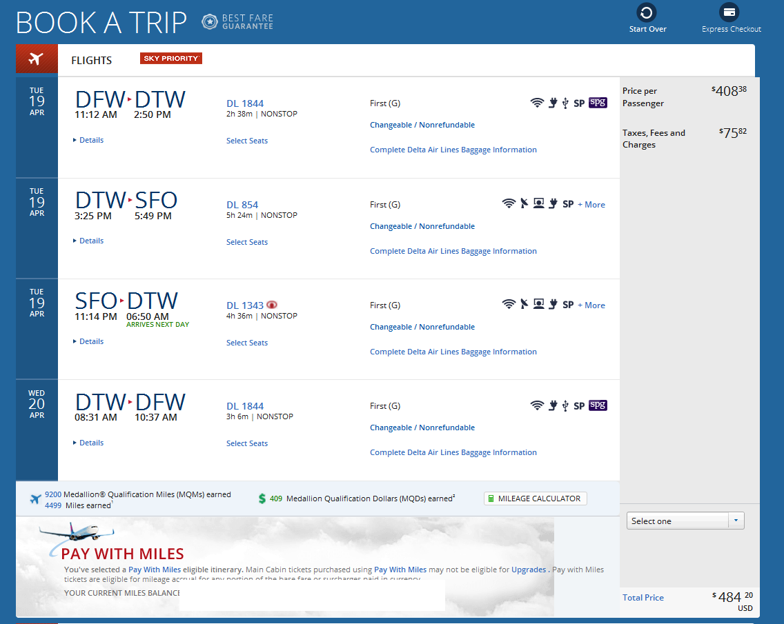 As you can see from the above you can do this and save a few bucks and depart later out of DFW enjoying a longer time, or position flight, at the Centurion in DFW. Or, depending on when you come in town, spend some extra time in the Centurion in SFO as well. Gosh it is great to have these kinds of #FirstWorldProblems to consider all the while picking up a boatload of MQMs in a quick trip.