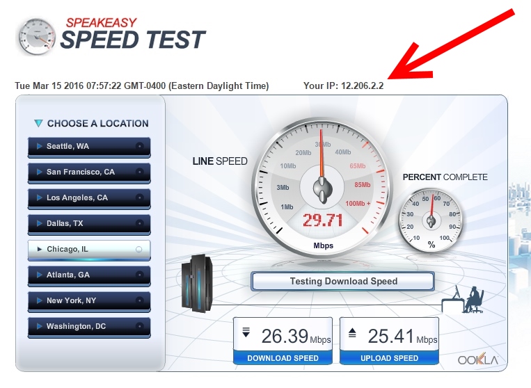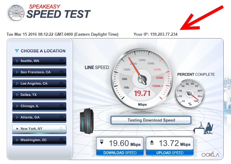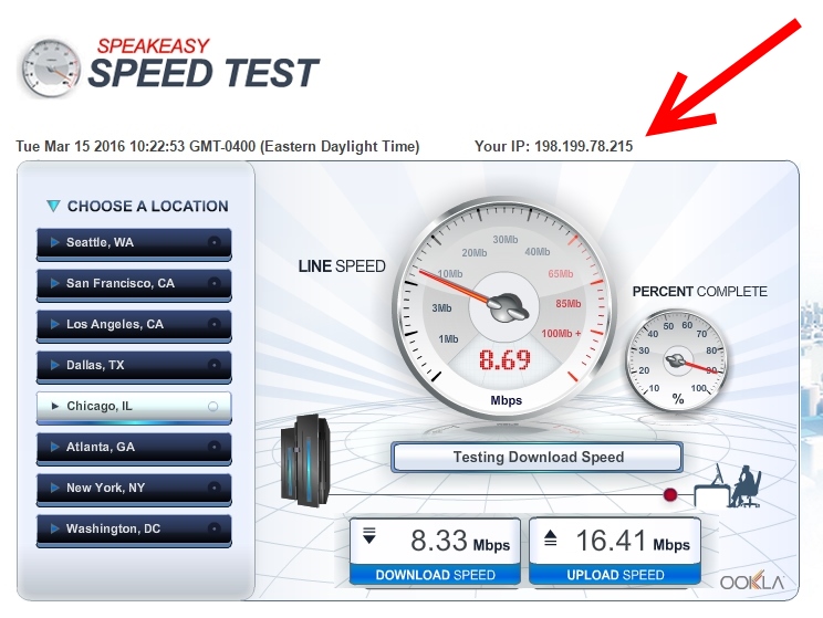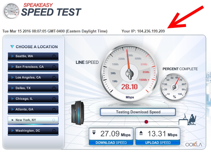 Interesting result. My download speed actually went up by a tiny amount but notice my upload speed was basically cut in half. But are results like this always the case? No, notice what happened when I turned the VPN off and then back on and connected to another IP address.