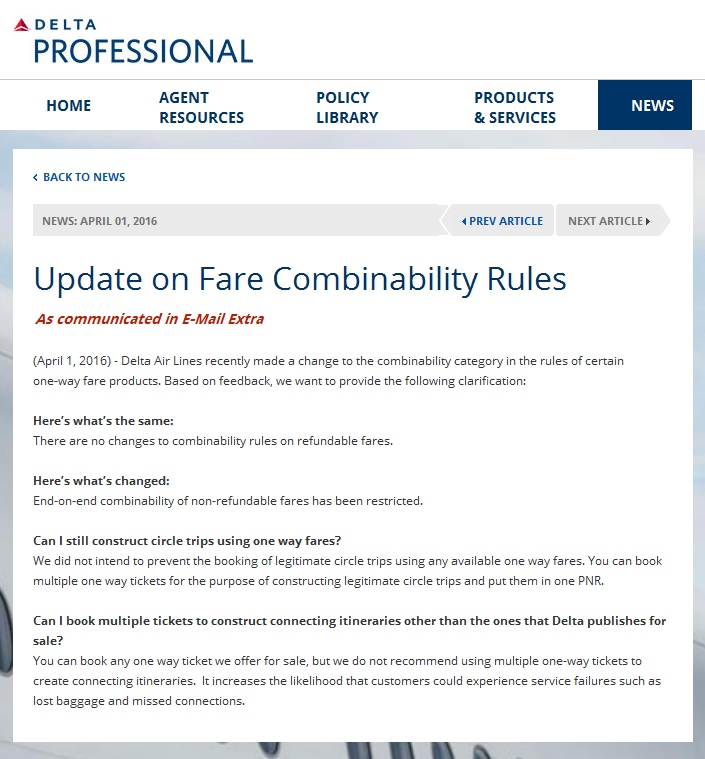 Delta even spelled it out clearly to travel agents and told them about the routing and pricing changes. My “favorite” part is the last paragraph that says: