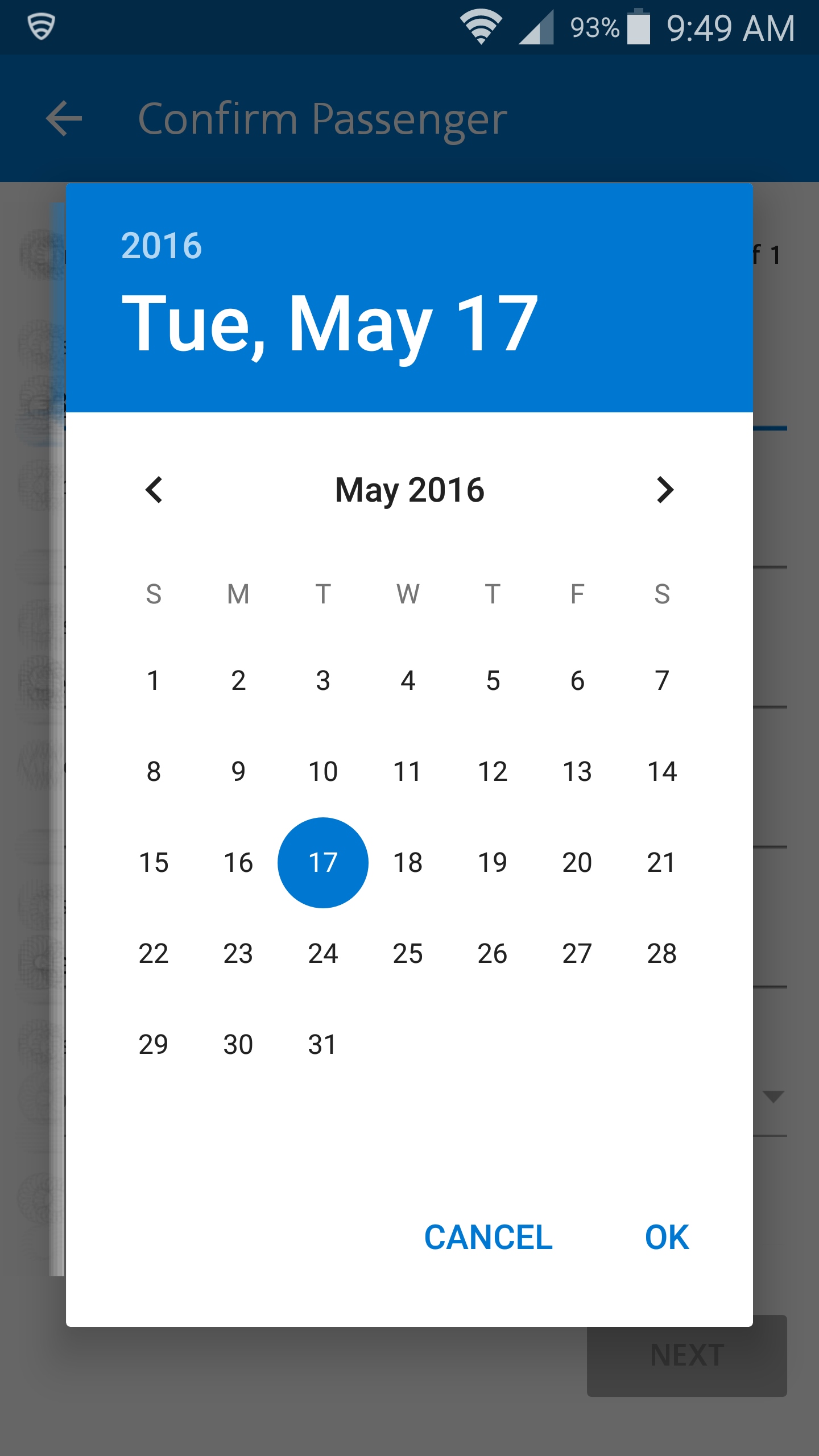 In your picture with the calendar on Android, you know you can just tap on the small “2016” near the top to select a different year, right?
