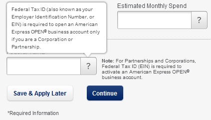 When you select Sole Proprietor the box for an EIN number goes away, that is, you do NOT have to fill in an EIN number to get AMEX business cards.