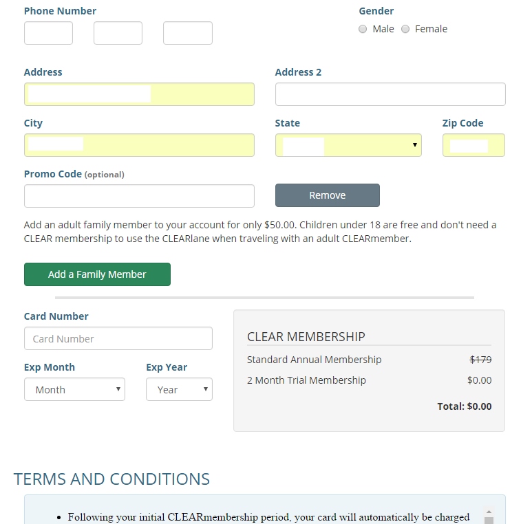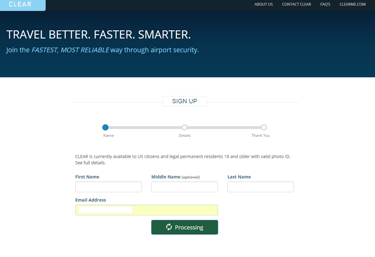 For others, like me, it was not working. According to CLEAR customer service you can call for help in this case and use the CLEARME.com sign-up page to get it started. Then, you will come this page: