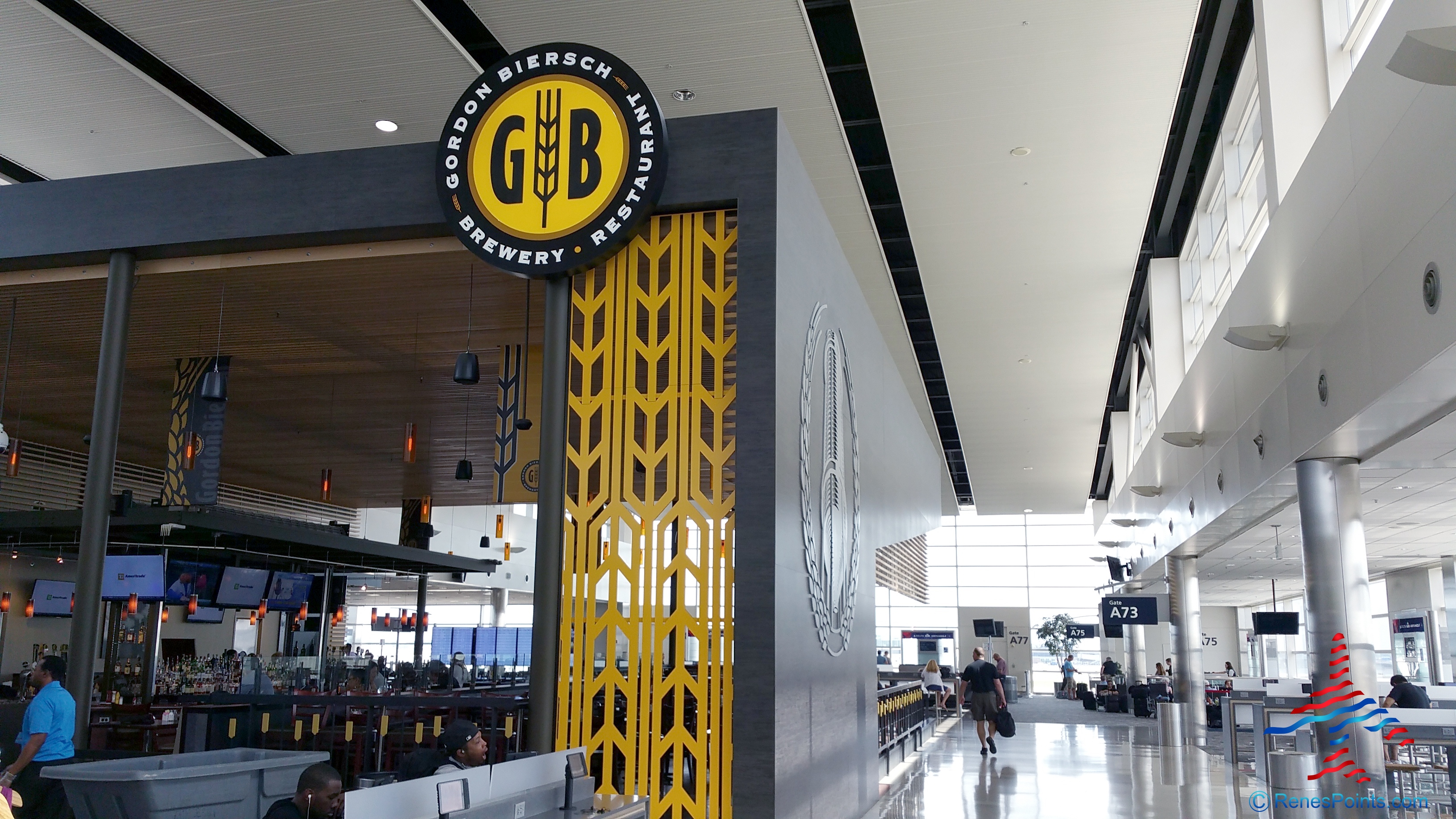 Also notice there are a number of fast food choices here at this end of the airport just past where the “air train” drops you off. In addition to the those choices you have a popular Gorden Biersch if you want something sit down between flights. But there is more than food.